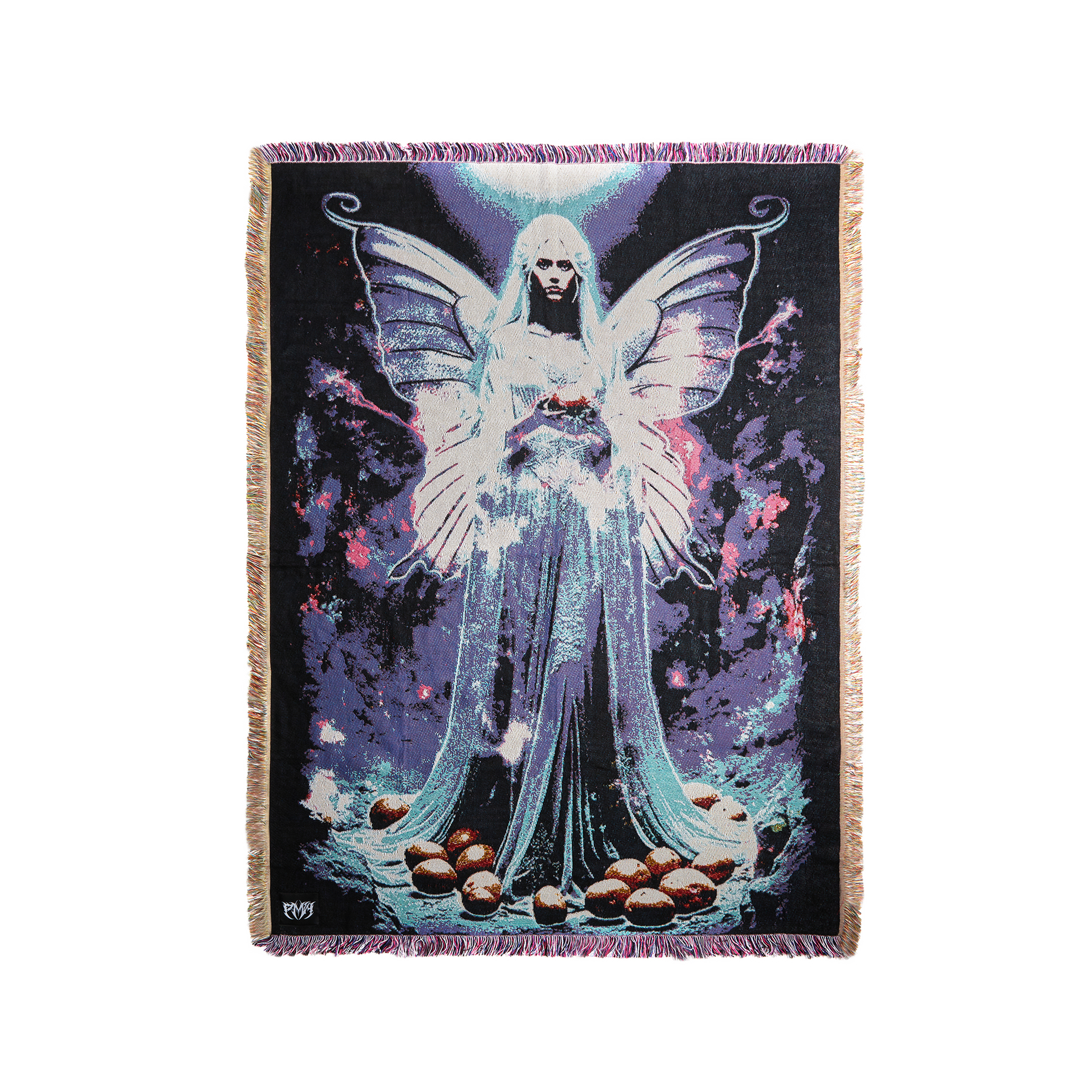 Woven with myth, magic, and carbs. This fully jacquard blanket brings Allay—the guardian of potatoes and subtle encouragement—into your home in divine detail. Use it as a throw, hang it like art, or wrap yourself in ancient fairy comfort while making objectively bad food choices.