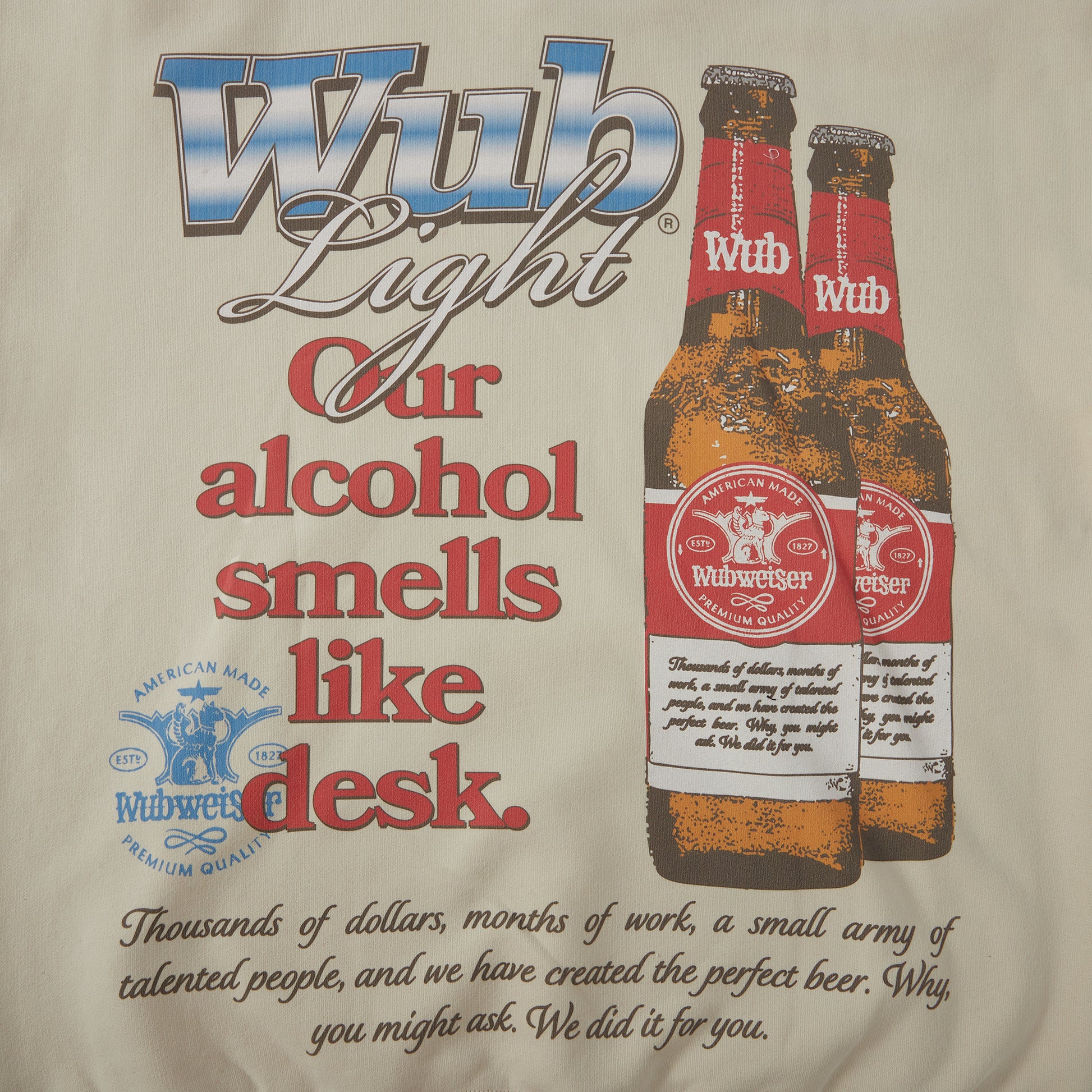 Crisp like a back porch beer, smooth like you never graduated. The Wub Light hoodie pairs best with lukewarm tallboys, a folding chair, and zero regard for your liver. “Our alcohol smells like desk” — and that’s called flavor, sweetheart.